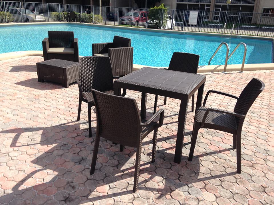 rattan коричневый столы, стулья, лаундж у бассейна
